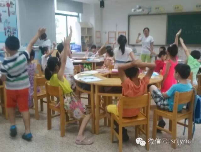 图为孩子们积极举手发言