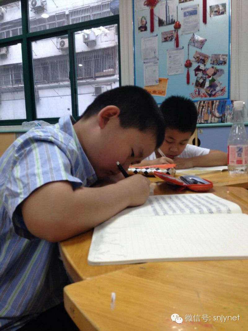 昨天错失季军的祝欣然同学刚进教室就投入到创作之中,全力以赴超越昨天。