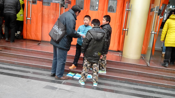一月五号下午四点半,本学习期新街口校区的情商训练课-售书活动进入尾声,赏能小作家们陆陆续续集中在莱迪商场的门口,结束了这次别有趣味的售书活动。这次售书活动取得了意想不到的成绩,实际上,在离集合时间还有一个小时左右的时候,赏能老师给孩子们准备书的箱子已经空空如也了,并且有很多孩子手中的书也不够卖了。这次售书活动,主要是为了培养孩子们与人交流的能力和增加孩子们的勇气,孩子们卖出的都是他们自己集结成册的作品,这有利于提升他们的自信心,卖出的钱归孩子自己支配,这也给了孩子很大的动力。